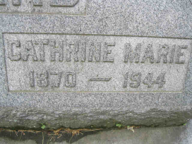 Marie Katherina Guard, a widowed white female, was born Dec 12, 1870, birthplace unknown., and lived at 13-15 W High, Lawrenceburg, Dearborn, Indiana. Her deceased husband was Hiram Guard. Marie's occupation was operator of a jewelry store. Her father was John T. Homberger of Indiana, her mother was Burna Vista McCright of Iowa. The informant was Gretchen Guard (her daughter) of Lawrenceburg, Indiana. Marie died on June 25, 1944 at 5am at the age of 73 years, 6 months and 20 days at Deaconess Hospital in Cincinnati, Hamilton, Ohio.