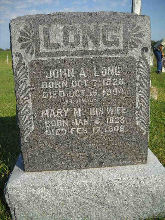 At the age of 78 years, John A. Long died at the family home in this city Wednesday, Oct. 19, 1904 at 11:40 a.m. He was a victim of Bright's disease and for several days prior to his death remained in an unconscious state a good portion of the time.