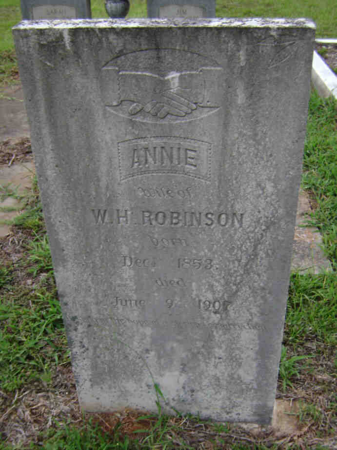 She was the daughter of Joseph C. Mc Curdy, AL, and Elizabeth Gay Carr, AL. She was the beloved wife of William H. Robinson. "Resting in the hope of a glorious resurrection" inscribed on her headstone.