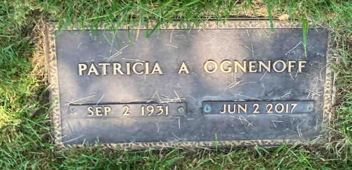 Ognenoff, Patricia A. "Pat" devoted and loving wife of the late Vasil Ognenoff for 58 years. Dear sister of the late Wendell and Marion "Manny" Miller. Pat is also survived Bill (Mary) Wergowske and their daughter Susan; who were dear friends, CPA and POA for the Ognenoff 's.