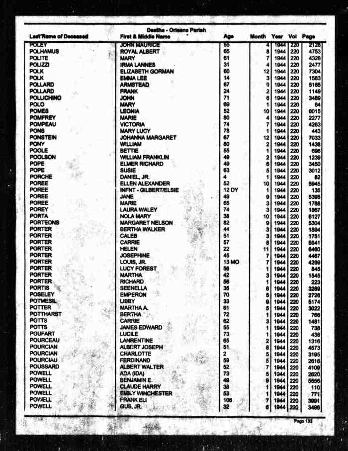 Per New Orleans, Louisiana, U.S., Death Records Index, 1804-1949
