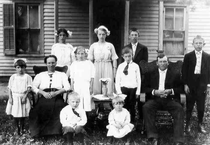 Warren Hayes is the 48 year old white male head of household, born in Indiana, his parents on Ohio, He is manager of a farm, and rents his home. His wife, Martha, is 48, was born in Illinois, her father in Illinois, her mother in Michigan. Seven of their children, all single and born in Illinois, still live at home: Warren, 19 year old son, laborer on a farm; Ellen, 18 year old daughter, Frank, 17 year old son; Edward, 15 year old son; Eunice, 14 year old daughter; Myrtle, 13 year old daughter; Edna, 11 year old daughter. Edward, Eunice, Myrtle and Edna attend school.