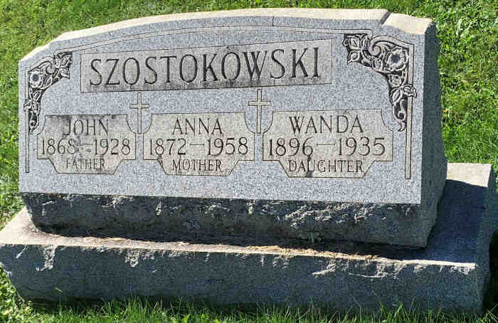 Birth Date: Oct 1896 - , , Pennsylvania, USA Christening: Death: 8 Sep 1935 - Hazleton Hospital, Hazleton, Luzerne, Pennsylvania, United States ( at age 38) Burial: 11 Sep 1935 - Transfiguration Church Cemetery, West Hazleton, Luzerne, Pennsylvania, United States Cause of Death: Find A Grave ID: 234853360