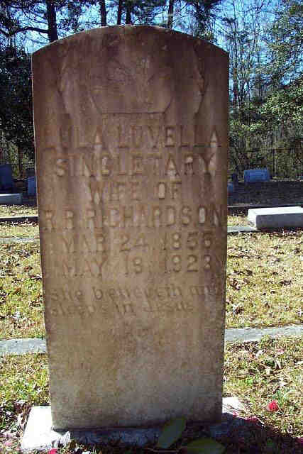 1. *Russell Roderick Richardson Marriage: 11 Dec 1872 Children: 1. Edmond Omar Richardson {Find A Grave ID: 67683027} 2. Issac Singletary Richardson {Find A Grave ID: 67495027} 3. Russell Redrick Richardson {Find A Grave ID: 154534736} 4. Rowena Eloise Richardson {Find A Grave ID: 94737529} 5. Lula Luvella Richardson {Find A Grave ID: 68378661} 6. Sallie O. Richardson 7. Ada Zeruiah Richardson {Find A Grave ID: 67682372} 8. Lemuel David Richardson 9. Samuel James Richardson 10. Ruth Richardson 11. Florence Richardson {Find A Grave ID: 57569839} 12. Dewey John Richardson {Find A Grave ID: 67682408}