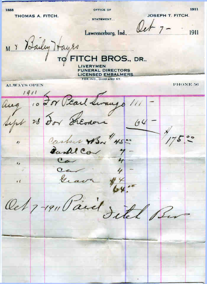 Birth Date: 1905 - Elizabethtown, Hamilton, Ohio, USA Christening: Death: 27 Sep 1911 - Elizabethtown, Hamilton, Ohio, USA ( at age 6) Burial: in Greendale Cemetery, Lawrenceburg, Dearborn, Indiana, USA Cause of Death: