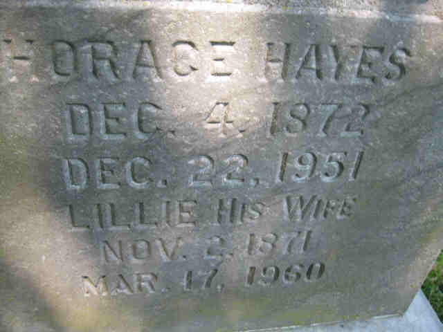 1. *Horace Clark HayesFind A Grave ID: 68246045 Marriage: Children: 1. Catherine Marie Hayes 2. Earl Charles Hayes 3. Enoch Horace Hayes 4. Hilda Dorothy Hayes 5. Louise Lillian Hayes {Find A Grave ID: 69683157}