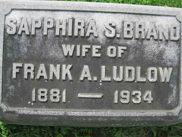 Sopphira B. Ludlow was born December 25, 1881 and died August 10, 1934 at the age of 52 years 7 months and 14 days. A white female housewife, she was married to Frank A. Ludlow [Informant] She was born and died in Lawrenceburg, Indiana. Her parents were John C. Brand of Germany and Margaret Cook of Germany. Sopphira died of acute nephritis, with contributory acute myocarditis. She is to be buried 8/11/1934 in Greendale Cemetery.