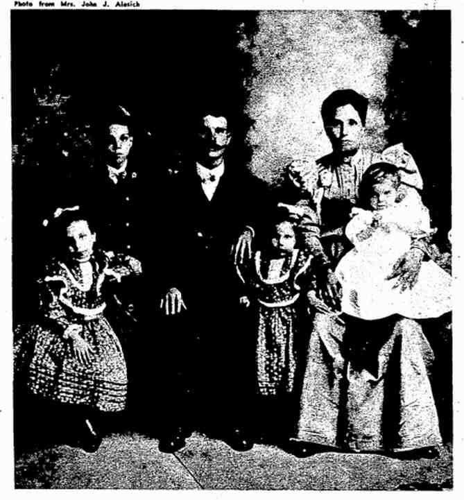 Mrs. Alesich is the granddaughter of Mr. and Mrs. Chenniliaro. Her mother, Mrs. Seraphine Patania, now of 2920 Banks, is the child standing between her elders in the photo.