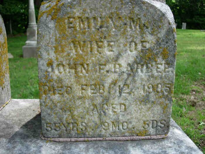 Inscription: EMILY M, WIFE OF JOHN F. BARBEE, DIED FEB 12, 1905, AGED 55 YRS. 9 MO. 5DS.
