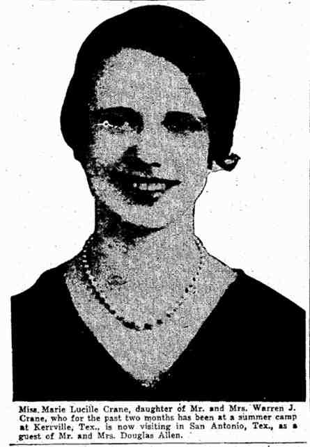 Mrs. Crane was accompanied here by her sister-in-law, Miss Marie Lucille Crane, daughter of Mr. and Mrs. Crane, who spent three months as a guest of her brother and sister-in-law, Mr. and Mrs. Crane, in Philadelphia.