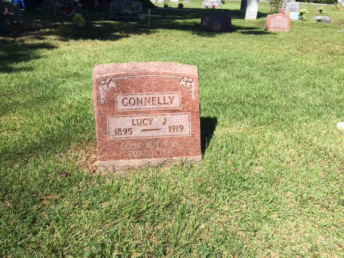 Lucy Jane Connelly, a married white female housewife, was born Jan 16, 1895 in Wayne Co., Illinois and died Sept 22, 1920 in St. Genevieve, Missouri [township illegible], at the age of 25 years, 8 months and 6 days. Her father was Dalton. Cause of death was pulmonary tuberculosis. Burial 9/23/1920 in Geneve Cemetery.
