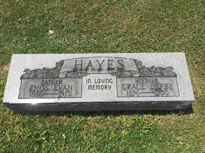 1. *Enos Evan Hiram HayesFind A Grave ID: 22575662 Marriage: 8 Dec 1917 Children: 1. Doris Evelyn Hayes {Find A Grave ID: 87000603} 2. Harold Evan Hayes {Find A Grave ID: 75478839} 3. Gordon Elwood Hayes {Find A Grave ID: 8342045} 4. Grace Ellen Hayes {Find A Grave ID: 748948235} 5. Donald Elmslie Hayes {Find A Grave ID: 83432190} 6. Enos Edison Hayes {Find A Grave ID: 194508454}
