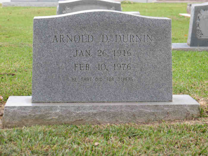 Survived by two sisters. Mrs. W. A. (Gladys) McGehee, Pride, and Mrs. Jack (Ruth) Herbert, Hammnd; and two brothers, John Durnin, Rt. 1, Greensburg, and A. K. Durnin, Baton Rouge. Preceded in death by his parents, Alex J. and Anna Davis Durnin; brother, David Durnin, and sister, Mrs. Leon (Mildred) Rohner. Pallbearers will be nephews, Clarence, Elzie, Glen, Joe, James, Elton and Floyd Rohner.