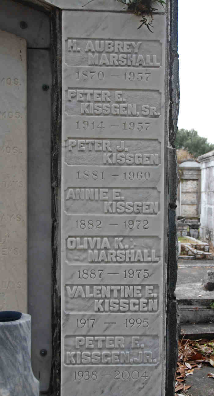 1. *Peter Jacob KissgenFind A Grave ID: 12119668 Marriage: Children: 1. Peter E. Kissgen 2. Louis Earhart Kissgen {Find A Grave ID: 212318455} 3. Calvin Earhart Kissgen 4. Valentine E. Kissgen
