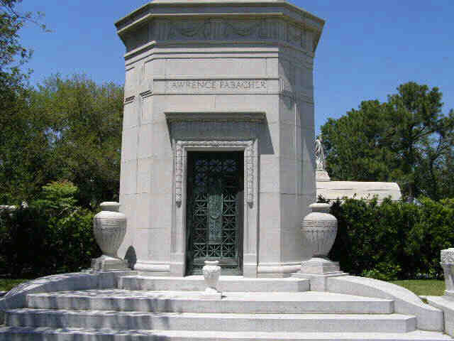 Restauranteur and Jackson Brewing Company president. He was buried in 1923 in the uniform of the Knights of St. Gregory, an honor conferred on him by Pope Piux X. He made his money in the restaurant business and lived in a showplace on St. Charles Avenue in New Orleans. Fabacher's obituary noted that his restaurant at Royal and Iberville (no longer his restaurant, but another one owned by the Brennan family, "Mr. B's", is located at that site) "meant New Orleans wherever gourmets and epicures gathered." The Lawrence Fabacher tomb is one of the most beautiful in the cemetery.