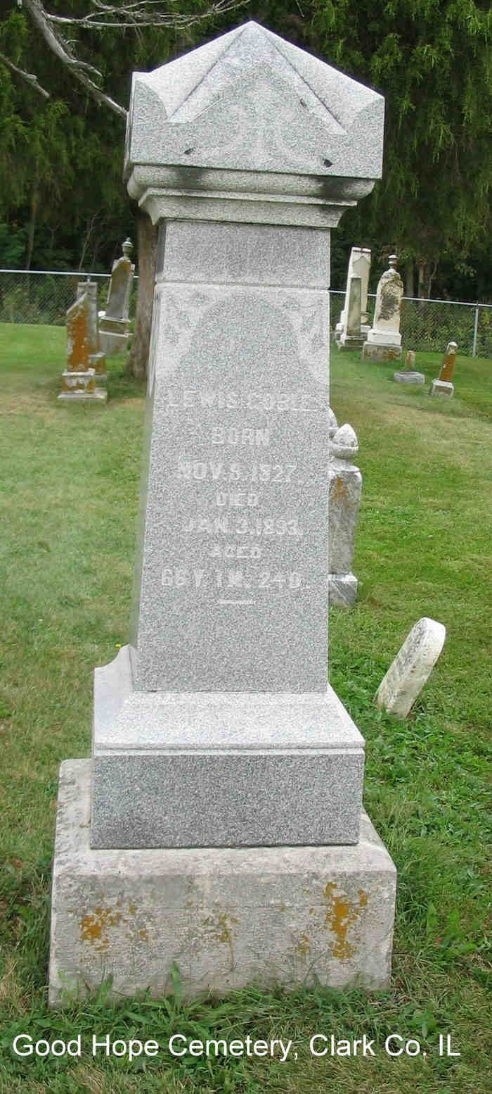 Birth Date: 8 Nov 1827 - , Perry, Indiana, USA Christening: Death: 3 Jan 1893 - Westfield, Clark, Illinois, United States ( at age 65) Burial: in Good Hope Cemetery, Westfield, Clark, Illinois, United States Cause of Death: Find A Grave ID: 32954470