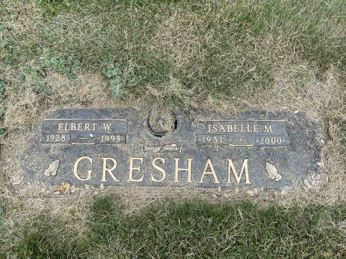 b. Elbert Woosley Gresham married Isabelle Marie Evans (b. 19 ?) and they have one child: Dale Leslie Gresham (b. 19 ?).