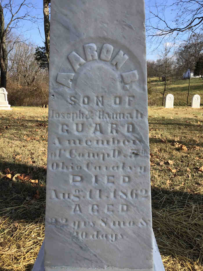Birth Date: 22 Oct 1839 - , , Indiana, USA Christening: Death: 11 Aug 1862 - , Hamilton, Ohio, USA ( at age 22) Burial: in Sugar Grove Cemetery, Guilford, Dearborn, Indiana, United States Cause of Death: disease Find A Grave ID: 39812903