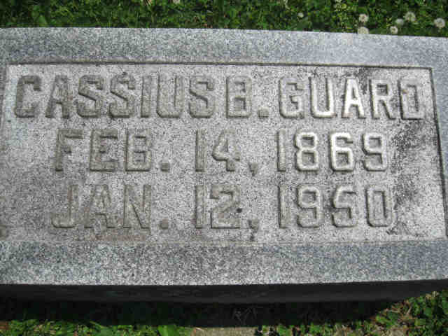 Cassius B. Guard was born 2/14/1869 in Ohio, and died 80 years 11 months later on 1/12/1950 at Good Samaritan on North Bend RR1, Cincinnati, Hamilton, Ohio. Per the informant, Mrs. Oltha M. Booker, he was a postal clerk, retired. His father was Ezra G. Guard, his mother Mary Hayes. Cause of death was malignant neoplasm intra abdominal site endotermined due to ??ashexia and possible abdominal aneurysm. He is to be buried 1/16/1950 in Greendale Cemetery in Lawrenceburg, Indiana.
