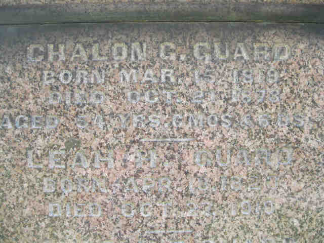 Per Indiana, U.S., Marriages, 1810-2001Children: 1. Angeline Guard 2. Mahlon Guard 3. Simeon Guard {Find A Grave ID: 59812786} 4. Rachel Guard 5. Ezra G. Guard 6. Almira Guard 7. Eunice Guard