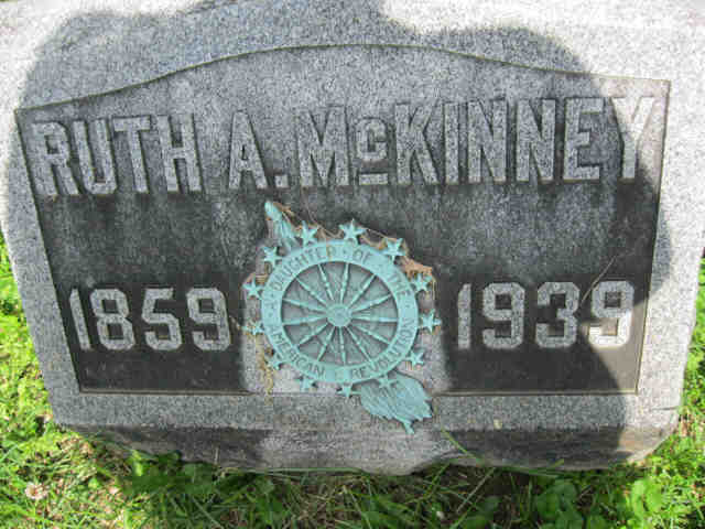 Ruth Ann Guard McKinney was born 4/13/1859 in Elizabethtown, Ohio, and died 79 yrs, 11 mos and 5 days later on 3/18/1939 in North Bend RR1, Whitewater, Hamilton, Ohio. A white female widow, husband Silas V. McKinney, she was a housewife. Her parents were Ezra Guard and Mary Jane Hayes of Indiana. All per the informant, Mrs. Alta M. Baker of Elizabethtown, Ohio. Principal causes of death were auricular fibralation since 1937, myocardial ??? ??? since 1937, and cerebral embolus.