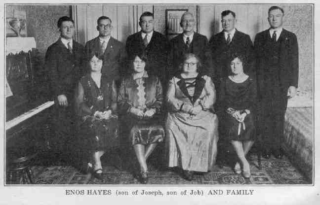 Joseph Hayes is a 46 year old white male farmer, born in Ohio. His real estate is valued at $11,000, personal effects at $1,600. His 36 year old wife, Sarah, keeps house and was born in Indiana. 16 year old son Job is at home. 13 year old son Enos is at school. 8 year old son Isaac is at school. 5 year old son Joseph and 2 year old Wilson are at home. All the children were born in Ohio.