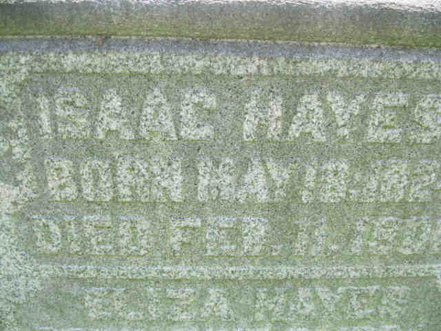 Per Indiana, Marriages, 1811-1959Children: 1. Isabella E. Hayes 2. *Elizabeth Gregg Marriage: 1847 Children: 1. Eliza Hayes {Find A Grave ID: 32606215} 2. Nancy Hayes