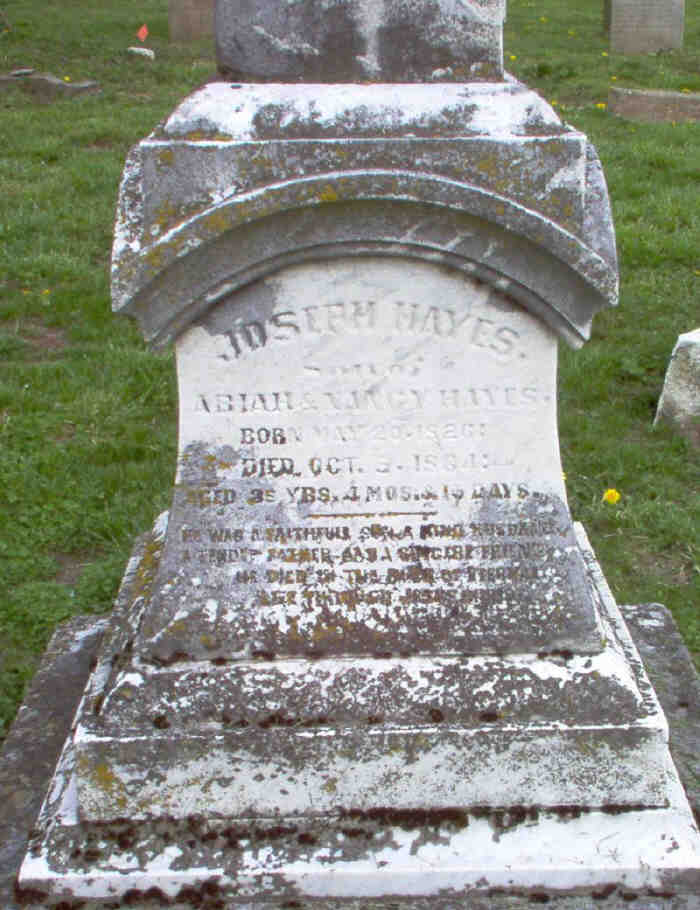 Joseph Hayes died October 5, 1864 at age 35