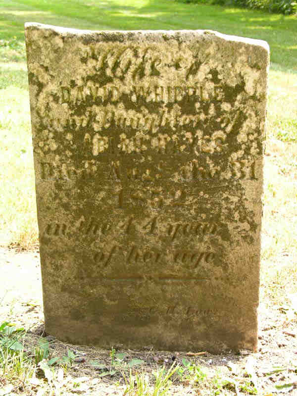 Per Indiana State Library Genealogy Database: Marriages through 1850Children: 1. Rachel Whipple 2. Samuel Whipple {Find A Grave ID: 50493759} 3. Harriet Whipple 4. Joseph Whipple