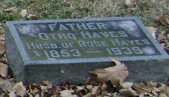 Otho Hayes, a white married male, was born August 29, 1853 in Valley Junction, Hamilton, Ohio, and died March 23, 1939 in Lawrenceburg, Dearborn, Indiana, at the age of 85 years, 6 months, 25 days. He was a construction worker for a contractor. His wife was Barbara Schnetzer Hayes. His parents were Solomon Hayes and Mary Roden, birthplaces not know by the informant, Henry Hayes of Lawrenceburg, Indiana. Otho is to buried March 27, 1939 in Greendale cemetery. Cause of death was bronchial pneumonia, duration 5 days, with contributing secondary anemia.