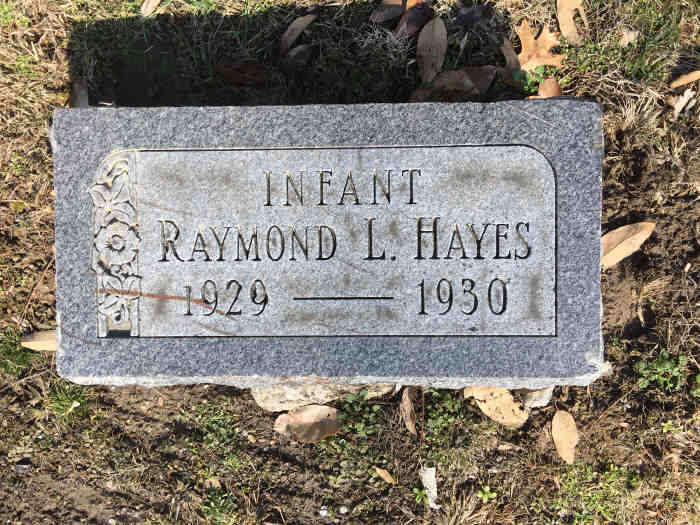 Raymond Lawrence Hayes, a white male, was born Oct. 5, 1929 in Kings Mills, Ohio. He died Sept. 30, 1930 at the age of 11 months 25 days in Kings Mills, Deerfield, Warren, Ohio. His father was J. M. Hayes of Ohio, his mother Flora Catron of Summerbrook, Kentucky. Cause of death was ileo colitis. Burial to take place Oct. 1, 1930 in Dearrisville [sp?] Cemetery.