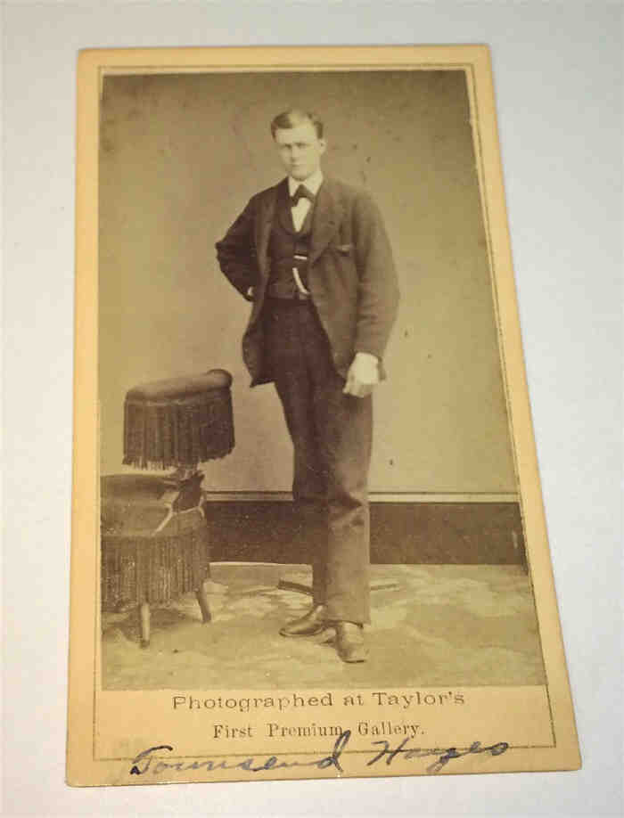 Townsend S. Hayes is the 53 year old white male head of household, a carpenter of his own account in the house carpentry trade. He rents his home. He and the entire family were born in Pennsylvania as were their parents. His wife is 40 year old Isabella Cecilia Hayes. They have been married 12 years and had 2 daughters, both still living. They are 11 year old Viola E. Hayes and 7 year old Mary E. Hayes.