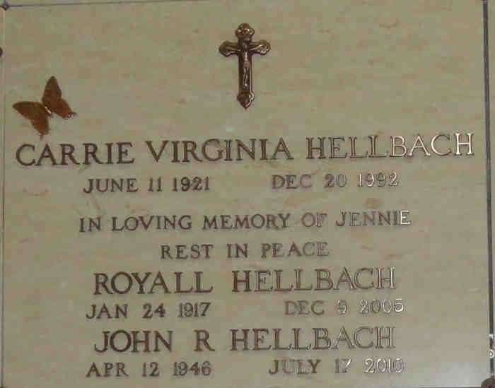 Father: Royall Cottington Hellbach {Find A Grave ID: 100162542} Mother: Carrie Virginia Furlow